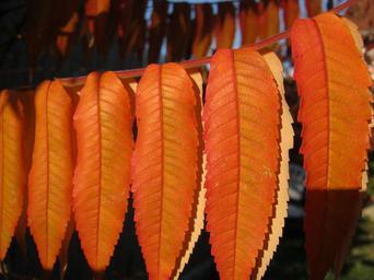Keywords: leaves autumn emerge orange bright translucent rhus