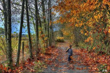 Keywords: leaves boy umbrella trees trail autumn