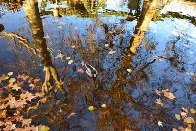 Keywords: leaves fall duck water reflection trees cane mallard nature landscape