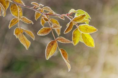 Keywords: leaves frost ice winter cold tomorrow yellow