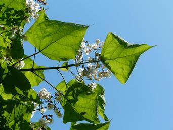 Keywords: leaves green flowers ordinary catalpa catalpa bignonioides tree deciduous tree bignoniaceae plants bignoniaceae ornamental tree park tree street tree slightly toxic
