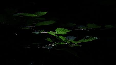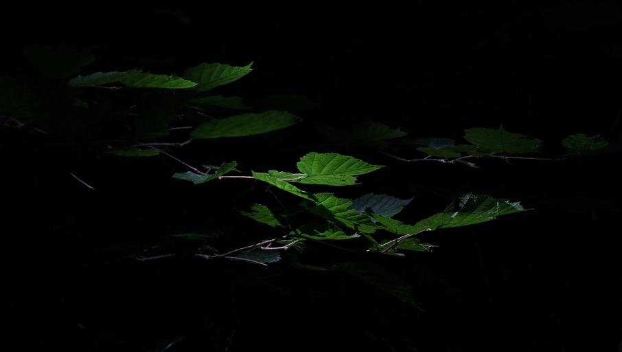 Keywords: leaves light dark shadowy green black forest leaf nature back light shine through sheet and shadow