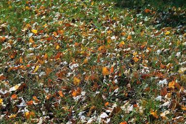 Keywords: leaves on lawn lawn green grass leaves autumn yellow brown russet