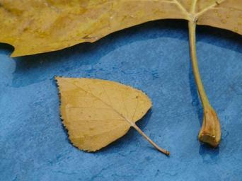 Keywords: leaves size comparison stalk autumn fall foliage rain wet maple leaf yellow fall color poplar leaf leaf black poplar leaf