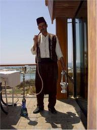 Keywords: Lebanon - Arguileh Man.jpg A Lebanese man wearing traditional cloths serving hubble bubble own 2010-03-31 Aboluay cc-zero Lebanon Hookahs People smoking the hookah Traditional clothes of Lebanon cc-zero