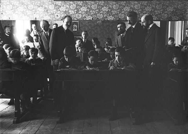 Keywords: L’école française (Lisbonne).jpg Information_field GEH record <blockquote> Chusseau-Flaviens Ch French active 1890s-1910s TITLE ON OBJECT Lisbonne a l'ecole francaise ca 1900-1919 negative gelatin on glass 11 x 15 cm Gift of Kodak Pathe 75 0111 1566 NON-GEH NUMBER 060 G INSCRIPTION Lisbonne a l'ecole francaise NOTES Catalogued 6/87 JBB SUBJECT interior school </blockquote> Institution George Eastman House http //www geh org/ar/chus/portugal/m197501111566_ful html http //www geh org/ar/strip05/m197501111566 jpg «28» between 1905-10-27 circa 1915 01 š 🛈 Charles Chusseau-Flaviens see below Information_field 1st uploaded as the 24 630 714<sup>th</sup> file in Wikimedia Commons Lic PD-old Black and white photographs of Lisbon Photographs of Portugal by Charles Chusseau-Flaviens School classrooms Photographs in the George Eastman House Collection Classrooms in Portugal Photographs of men Adults with children Wallpapered rooms School desks French language courses Lisbon in the 1900s Lisbon in the 1910s Black and white photographs of boys |