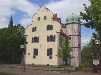 Keywords: Ledenhof Osnabrueck.jpg Der Ledenhof in Osnabrück rechts der Treppenturm im Vordergrund der Palas own 2008-05-18 Garitzko Ledenhof