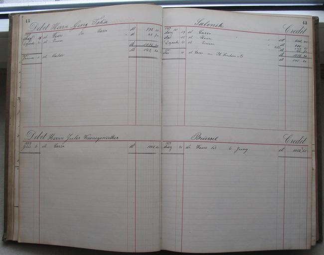 | Keywords: Ledger of the fur trader Dedo from Leipzig, 1876-1885 043.jpg Hauptbuch des Leipziger Rauchwarenhändlers Dedo 1986-1975 Herrn Georg Toka Salonik Herrn Jules Koenigswerther Brüssel 042 044 Collection Kuhn 2010-12-29 10 14 07 Dedo PD-old Ledger of the fur trader Dedo in Leipzig 1876-1885 Furriers in Thessaloniki Toka Georg Furriers in Brussels Koenigswerther | ||||