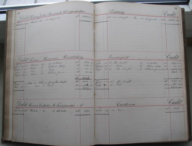 Keywords: Ledger of the fur trader Dedo from Leipzig, 1876-1885 052.jpg Hauptbuch des Leipziger Rauchwarenhändlers Dedo 1986-1975 Herrn Jules Heinrich Königswerther Leipzig Herrn Hermann Heidlberg Budapest Herren Costakis Th Pulopoulos Co Castoria 051 053 Collection Kuhn 2010-12-29 14 50 06 Dedo PD-old Ledger of the fur trader Dedo in Leipzig 1876-1885 Furriers and fur traders of Leipzig named in the accountancy of Naoum Dedo in Leipzig Königswerther Jules Heinrich Furriers in Budapest Heidlberg Hermann History of fur trade in Kastoria Pulopoulos Co Furriers and fur traders of Kastoria named in the accountancy of Naoum Dedo in Leipzig Pulopoulos Co Fur wholesale dealers in Budapest |