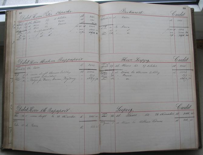 | Keywords: Ledger of the fur trader Dedo from Leipzig, 1876-1885 060.jpg Hauptbuch des Leipziger Rauchwarenhändlers Dedo 1986-1975 Herrn Peter Adresko Bukarest Herrn Abrahm Pappaport Leipzig Herrn M Pappaport Leipzig 059 061 Collection Kuhn 1986-1975 Dedo PD-old Ledger of the fur trader Dedo in Leipzig 1876-1885 Furriers and fur traders of Leipzig named in the accountancy of Naoum Dedo in Leipzig Pappaport Furriers in Bucharest Adresko Peter | ||||