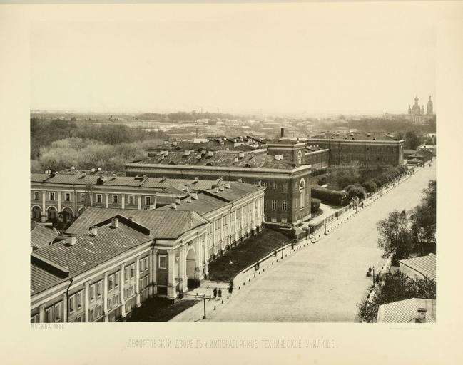 | Keywords: Lefortovsky palace 1883.jpg 2009 photo - without watch tower Far right Old Believers churches in Lefortovo Вид на Лефо товский и Слободской дво цы и улицу Ко овий Б од нынешнюю 2-ю Бауманскую в оскве Фото ско ее всего сделано с каланчи Лефо товской полицейской части здание уцелело а каланча - нет http //www panoramio com/photo/763596 Лефо товский дво ец в 1883<br>Originally published as plate 26 of Nikolay Naidenov's 1891 supplement to his 1884 осква Виды некото ых го одских местностей х амов п имечательных зданий и д угих соо ужений Nikolay Naidenov 1834-1905 Photographed in 1888 published in 1891 PD-Old-100 thumb left 55 46 8 876022515991053 N 37 41 4 393901824951172 E Lefortovo palace Views of Moscow by Nikolay Naidenov 1891 supplement 26 Photographs by Nikolay Naidenov Bauman Moscow State Technical University |