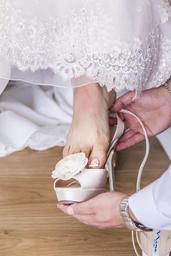Keywords: leg woman bride shoe whites fine heel nail fingers pedicure wedding dress marriage