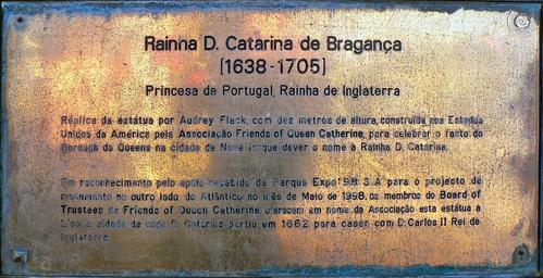 Keywords: Legenda - Catarina de Bragança - Estátua na Parque Expo.jpg 2006-03-13 own assumed Juntas Statue of Catherine of Braganza in Lisbon Metal plaques