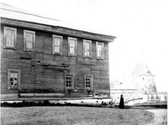 Keywords: Leicinger Solovki 35.jpg ru Соловецкий монасты ь Здание А хангельской гостиницы В стене п обоины от английских яде после бомба ди овки 1854 года Crimean War - Solovki - 1854