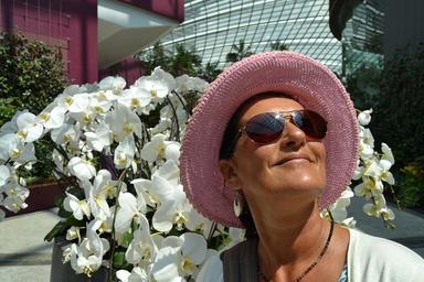 Keywords: leisure freedom travel woman face hat orchid sunshine look up