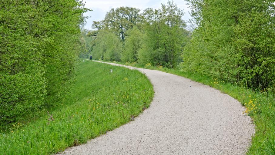 Keywords: leisure recovery hiking lane road away nature meadow green wide distant