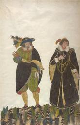 | Keywords: Lelio and Florinda by Minaggio tavola 106.jpg en Two commedia dell'arte actors taking a bow It is thought to depict Giovan Battista Andreini as Lelio and his wife Virginia Ramponi-Andreini as Florinda The portrait is from The Feather Book a series of images made entirely of bird feathers The creator was Dionisio Minaggio the Chief Gardener of the Duchy of Milan The book primarily contained images of birds but also contained sets of images depicting hunters tradesmen musicians and commedia dell'arte actors This portrait plate 111 is from the collection of commedia dell'arte actors 1618 http //digital library mcgill ca/featherbook/comedians html Creator Dionisio Minaggio PD-old-100 Uploaded with UploadWizard Commedia dell'arte Actors in art Feathers in art Dionisio Minaggio |