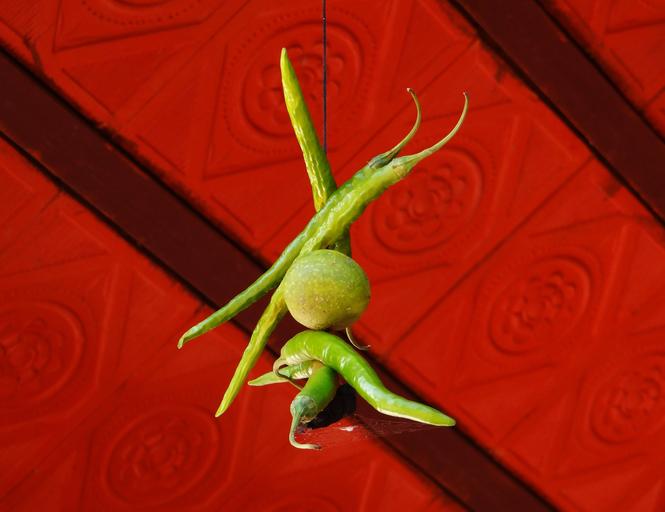 Keywords: lemon-chilli-charcoal charm evil-dispeller superstition hubli india religious religion culture spiritual tradition