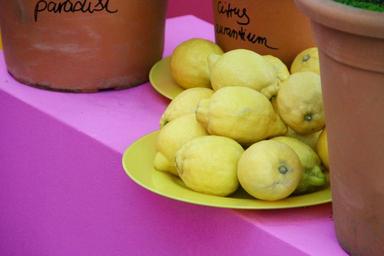 Keywords: lemons zitronendeko yellow pink deco decorated plant