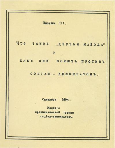 Keywords: Lenin book 1894.jpg ru Обложка книги В И Ленина Что такое д узья на ода и как они воюют п отив социал-демок атов 1894 фото собственного экземпля а Ленин В И PD-old Literary works 1894 books Vladimir Lenin's books 1894 establishments