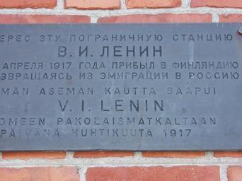 | Keywords: Lenin in Tornio 1917 memory plate.jpg en A memory plaque of Lenin's travel to Russia via Tornio in 1917 located at Tornio railway station fi Muistolaatta Tornion rautatieaseman pohjoispäässä Leninin matkasta Tornion kautta Pietariin huhtikuussa 1917 paljastettu 8 11 1967 Own 2007-07-17 Jtaramaa Bilingual plaques Bilingual signs in Finland Plaques in Finland Plaques in Finnish Plaques in Russian Plaques referencing 1917 Tornio railway station Vladimir Lenin plaques 2007 in Tornio July 2007 in Finland Taken with Olympus u40D / S-500 / uD500 |