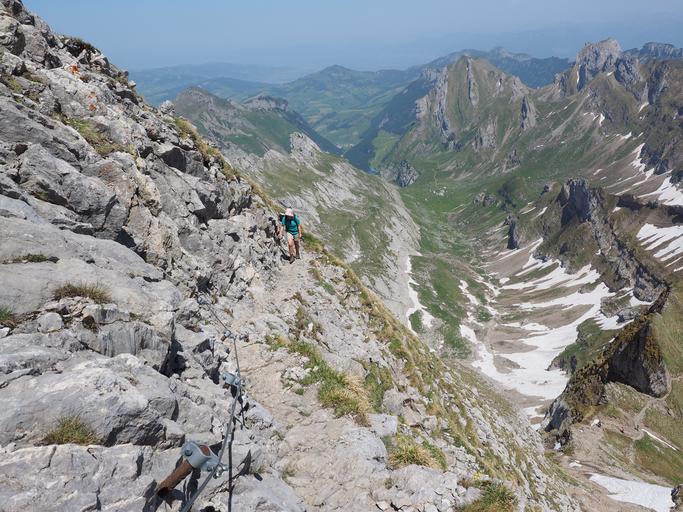 Keywords: lenses ridge wanderin climb clamber mountaineering steep exposed mountain peak climbing säntis region meglisalp seealpsee