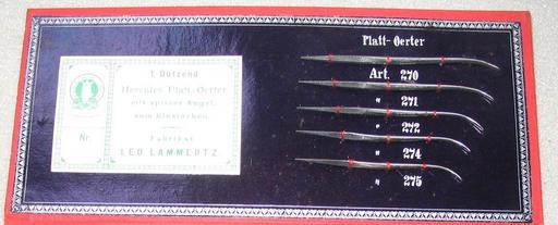 | Keywords: Leo Lammertz Aachen, sewing-needles, sample card (2 d).jpg Nähnadel-Musterkarte der Firma Leo Lammertz Aachen 9 x 20 cm Leinen mit Blind- und mit Goldprägung Leo Lammertz Aachen Eingetr Marke Beste Nadel der Welt Neun Musternadeln enthaltend Warenzeichen Eingetr Marke; Nadelheftchen-Etikett 1 Dutzend Hercules Platt-Oerter mit spitzer Angel zum Einstechen Fabrikat Leo Lammertz Platt Oerter Art 270 Art 271 Art 272 Art 274 Art 275 Nadelheftchen-Etikett 1 Dutzend Hercules Quer-Oerter mit spitzer Angel zum Einstechen Fabrikat Leo Lammertz Platt Oerter Art 278 Art 278/279 Art 279/280 Art 280 Own possession Erhalten von der Firma Pelz-Orlob Düsseldorf 2011-05-16 Kürschner <span class signature-talk >talk</span> 11 55 16 May 2011 UTC PD-old PD-textlogo Kürschner <gallery> File Leo_Lammertz_Aachen _sewing-needles _sample_card_ 2_a jpg File Leo_Lammertz_Aachen _sewing-needles _sample_card_ 2_b jpg File Leo_Lammertz_Aachen _sewing-needles _sample_card_ 2_c jpg </gallery> Sewing needles Furrier's collection Kuhn Needlemakers Pelz-Orlob Furriers technology Leo Lammertz |