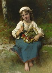 | Keywords: Léon Perrault - Young Girl With A Basket Of Flowers.jpg Artwork Creator Léon Perrault 1880 Oil on Canvas Size cm 78 1 108 6 private collection object history Gesner Fine Art Acquired from the above in 1985 Property sold to benefit The Daniel M Tabas Family Foundation exhibition history credit line place of creation -L-Perrault-1880- lower left signature and date http //www sothebys com/en/auctions/ecatalogue/2016/european-art-n09566/lot 5 html Sotheby's http //www sothebys com/content/dam/stb/lots/N09/N09566/118N09566_95YHG jpg direct link accession number PD-old-auto-1923 1908 Females facing left in art 1880 oil on canvas paintings in France Front views of girls in art 19th-century oil portraits of sitting girls at full length Female brown hair in art Girls looking at viewer in art Paintings of girls with flower baskets Paintings of girls sitting on the ground outdoors Léon Perrault Images from Sotheby's |