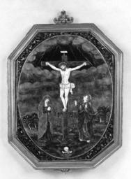 | Keywords: Léonard Limosin II - The Crucifixion - Walters 44136.jpg The tall cross is set off against a sky overcast with somber clouds From them and from a black aperture at the top shoot bolts and shafts of light At the horizon is a blue ridge of hills below which are clustered the buildings of Jerusalem trees and a stream Beside the cross the Virgin bows her head and clasps her hands St John lifts his two hands in mourning and adoration A skull and a bone lie at the foot of the cross In the grass at the lower left is the signature L L the two letters are separated by a fleur-de-lys early Other date century 17 technique painted enamel copper cm 13 5 10 1 accession number 44 136 23700 William T / Henry Walters Collection Baltimore date and mode of acquisition unknown Walters Art Museum Henry Walters Acquired by William T or Henry Walters place of origin Limoges France Walters Art Museum license Limoges painted enamels in the Walters Art Museum Media contributed by the Walters Art Museum needs category review Painted enamel art in the Walters Art Museum Léonard Limosin II |