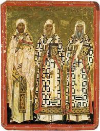 | Keywords: Leonty Rostovsky, Alexius of Moscow, Metropolitan Peter.jpg ru Леонтий Ростовский мит ополиты Пет и Алексий Двусто онняя икона-таблетка Вто ая четве ть XV в Холст левкас темпе а 23×18 см Се гиево-Посадский госуда ственный исто ико-художественный музей-заповедник Россия Из комплекта так называемых «Т оицких таблеток» Обо от «Василий Великий Иоанн Златоуст Г иго ий Богослов» http //www icon-art info/topic php lng ru top_id 188 mode img author Вто ая четве ть XV в PD-Art Leontiy of Rostov Alexius of Moscow in icons 1425 Troitskiye tabletki Icons of Peter of Kiev Icons of saints with three persons |