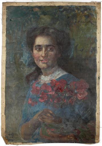 Keywords: Leopold Pilichowski - Portrait of a girl holding flowers.jpg en Portrait of a girl holding flowers http //www bonhams com/auctions/19923/lot/24/ Bonhams Creator Leopold Pilichowski s 1890 oil canvas cm 71 47 5 object history credit line signed 'L Pilichowski' upper right accession number PD-old-auto-1923 1934 Leopold Pilichowski Portrait paintings of women 1890s portrait paintings Images from Bonhams