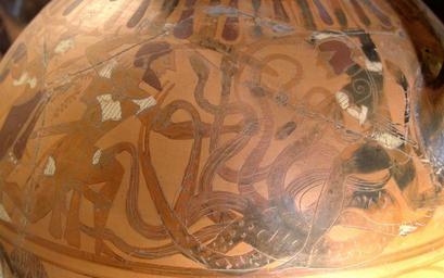 | Keywords: Lernaean Hydra Louvre E851.jpg Prometheus Painter Heracles Iolaus and the Lernaean Hydra Side A of an Attic black-figured amphora 560 “555 BC HĂ©raclès Iolaos et l'Hydre de Lerne Face A d'une amphore attique Ă figures noires 560-555 av J -C H 40 cm; D 25 cm Museum Louvre Department of Greek Etruscan and Roman antiquities in the Louvre Sully first floor room 41 case 11 object history credit line Purchase 1857 accession number E 851 User Bibi Saint-Pol own work 2007-06-01 other versions Heracles in ancient Greek pottery Iolaus in ancient Greek pottery Lernaean Hydra in ancient Greek pottery Tyrrhenic amphoras Prometheus Painter Greek antiquities in the Louvre - Room 41 550s BC |