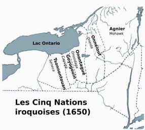 | Keywords: Les Cinq Nations iroquoises (1650).svg fr Les iroquoiens étaient parmi les plus militarisés des peuplades du nord-est La Ligue des Cinq Nations iroquoises fut fondée vers 1560 Elle regroupait les Agniers que les Anglais nommèrent Mohawks les Goyogouins Cayugas les Onontagués Onondagas les Onnéiouts Oneidas et les Tsonnontouans Senecas en The Iroquoians were apparently the most militarized of the peoples of the northeast The Five Nations Iroquois Confederacy was founded around 1560 It included the Mohawks that the french called the Agniers the Cayugas Goyogouins Onondagas Onontagués Oneidas Onnéiouts and Senecas Tsonnontouans 2016-08-29 https //commons wikimedia org/wiki/File Iroquois_5_Nation_Map_c1650 png R A Nonenmacher other versions cc-zero Iroquois maps |