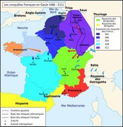 | Keywords: Les conquêtes franques en Gaule (486 - 511).svg fr Les conquêtes franques en Gaule 486 - 511 Travail personnel sur un fond de carte de historicair Image Blank map of Gaul 1st century BC svg D'après Godefroid Kurth Clovis éditions Tallandiers 2000 2ème de couverture et Michel Rouche Clovis éditions Fayard 1996 p 337 Romain0 2010-04-29 Les conquêtes franques en Gaule 486 - 511 -es svg Maps of Gauls Maps of the Merovingian territory Maps showing 6th-century history SVG maps showing history in French |