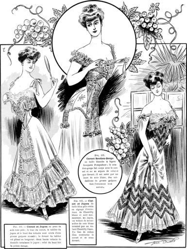 | Keywords: LES DESSOUS ELEGANTS1905page129.png Corset et Jupon Fig 112 <br>Corset Soutien-Gorge en faille blanche à légers bouques Pompadour ; le soutien-gorge fait corps avec le corset et ne se sépara de celui-ci que devant ; il est serré par un lacet de soie blanc des médaillons de grosse guipure font l'ornement tout autour Les Dessous Élégants N° 8 page 129; fig 111; fig 112; fig 113 1905 Jane Durelle PD Image LES_DESSOUS_ELEGANTS1905page129b png PD-old Dessous Elegants 1905 Petticoats <gallery> Image DessousElegants1905n8pI png Front page Image DessousElegants1905n8pII png II Image DessousElegants1905n8pIII png II Image DessousElegants1905n8pIV png IV Image DessousElegants1905n8pV png V Image DessousElegants1905n8pVI png VI Image DessousElegants1905n8pVII png VII Image DessousElegants1905n8pVIIIa png VIII top Image DessousElegants1905n8pVIIIb png VIII bottom Image DessousElegants1905n8p119 png 119 Image DessousElegants1905n8p120 png 120 Image DessousElegants1905n8p121 png 121 Image DessousElegants1905n8p122 png 122 Image DessousElegants1905n8p123 png 123 Image DessousElegants1905n8p124 png 124 Image DessousElegants1905n8p125 png 125 Image DessousElegants1905n8p126 png 126 Image DessousElegants1905n8p127 png 127 Image DessousElegants1905n8p128 png 128 Image LES_DESSOUS_ELEGANTS1905page129 png page 129 Image DessousElegants1905n8p130 png 130 Image DessousElegants1905n8p131 png 131 Image DessousElegants1905n8p132 png 132 Image DessousElegants1905n8p133 png 133 Image DessousElegants1905n8p134 png 134 Image DessousElegants1905n8pIX png IX Image DessousElegants1905n8pX png X Image DessousElegants1905n8pXI png XI Image DessousElegants1905n8pXII png XII </gallery> |