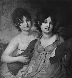 Keywords: Les Princesses Anne et Varvara Gagarine.jpg Portrait of the Sisters Princess Anna Gavriilovna Gagarina and Princess Varvara Gavriilovna Gagarina The portrait depicts the members of the Russian princely family w Gagarin family Gagarin the daughters of Actual Privy Councilor Gavriil Petrovich Gagarin on the right with a music paper ” Anna Gavriilovna Gagarina 1782 ”1856 the married family name ” Golovina the monastic name ” Ioanna; on the left with a guitar ” Varvara Gavriilovna Gagarina 1784 ”1802 the married family name ” Elgunova or Sigunova Π Π° ΠΊΠ°Ρ Ρ‚ΠΈΠ½Π΅ ΠΈΠ·ΠΎΠ±Ρ Π°ΠΆΠ΅Π½Ρ‹ Π΄ΠΎΡ‡Π΅Ρ ΠΈ Π΄Π΅ΠΉΡΡ‚Π²ΠΈΡ‚Π΅Π»ΡŒΠ½ΠΎΠ³ΠΎ статского совСтника w Π“Π°Π³Π°Ρ ΠΈΠ½ Π“Π°Π²Ρ ΠΈΠΈΠ» ΠŸΠ΅Ρ‚Ρ ΠΎΠ²ΠΈΡ‡ Π“Π°Π²Ρ ΠΈΠΈΠ»Π° ΠŸΠ΅Ρ‚Ρ ΠΎΠ²ΠΈΡ‡Π° Π“Π°Π³Π°Ρ ΠΈΠ½Π° ru ΡΠΏΡ Π°Π²Π° Π΄Π΅Ρ ΠΆΠΈΡ‚ Π½ΠΎΡ‚Π½Ρ‹ΠΉ лист ” Анна Π“Π°Π²Ρ ΠΈΠΈΠ»ΠΎΠ²Π½Π° Π“Π°Π³Π°Ρ ΠΈΠ½Π° 1782 ”1856 Π² замуТСствС ” Π“ΠΎΠ»ΠΎΠ²ΠΈΠ½Π° Π² иночСствС ” Иоанна; слСва с Π³ΠΈΡ‚Π°Ρ ΠΎΠΉ ” Π’Π°Ρ Π²Π°Ρ Π° Π“Π°Π²Ρ ΠΈΠΈΠ»ΠΎΠ²Π½Π° Π“Π°Π³Π°Ρ ΠΈΠ½Π° 1784 ”1802 Π² замуТСствС ” Π•Π»Π³ΡƒΠ½ΠΎΠ²Π° ΠΈΠ»ΠΈ Π‘ΠΈΠ³ΡƒΠ½ΠΎΠ²Π° 1802 painting unknown 1 Gagarine 1230433 other versions <gallery>Borovikovsky pt gagarinyh jpg</gallery> PD-old-100 Files uploaded by ShinePhantom from Russian Portraits Female portraits by Vladimir Borovikovsky Anna and Varvara Gagarin Borovikovskiy 1802 1802 portrait paintings 1800s portrait paintings of Russia female 19th-century family portraits 1802 19th-century oil portraits of sitting women at three-quarter length 1802 Black and white reproductions of portrait paintings in color 1802 Family portraits of Russia Portrait paintings with the balcony Portraits of sisters 1802 Portraits with guitars 1802 Portraits with musical scores 1802