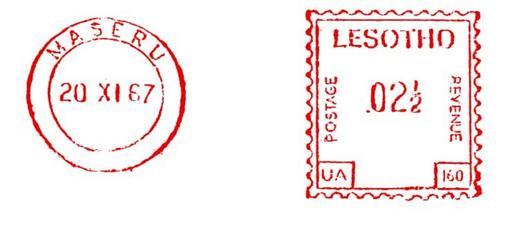 Keywords: Lesotho stamp type BA2.jpg en Meter stamp catalog image Lesotho type BA2 Richard Stambaugh Richard Stambaugh 2011-11-13 Meter stamps of Lesotho
