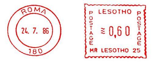 Keywords: Lesotho stamp type BA4.jpg en Meter stamp catalog image Lesotho type BA4 Richard Stambaugh Richard Stambaugh 2011-11-13 Meter stamps of Lesotho