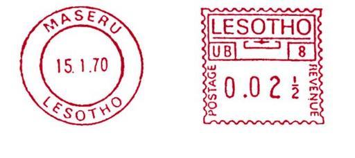 Keywords: Lesotho stamp type BB1.jpg en Meter stamp catalog image Lesotho type BB1 Richard Stambaugh Richard Stambaugh 2011-11-13 Meter stamps of Lesotho
