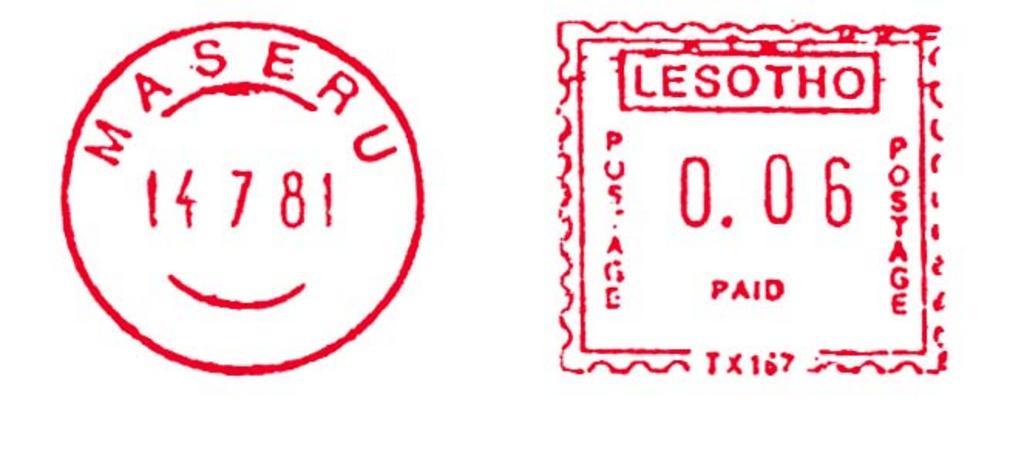 Keywords: Lesotho stamp type BB4.jpg en Meter stamp catalog image Lesotho type BB4 Richard Stambaugh Richard Stambaugh 2011-11-13 Meter stamps of Lesotho