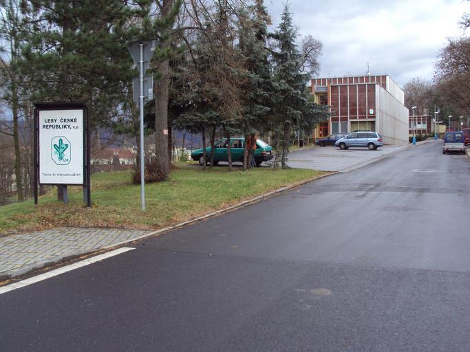 Keywords: Letná Lesy1.jpg cs Silnice z města na vrch Letné vzadu budova Lesy ČR own Zákupák 2010-11-14 Dr Vrbenského Teplice Lesy České republiky krajské ředitelství Teplice