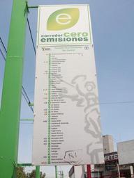 | Keywords: Letrero corredor cero emisiones.jpg es Letrero con las estaciones del Corredor Cero Emisiones de Norte a Sur Sign giving list of stations stops on Mexico City's Zero-Emissions Corridor trolleybus line own GAED 2009-11-09 Mexico City trolleybus system |