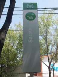 Keywords: Letrero Estacion Saratoga.jpg es Letrero de la estación Saratoga del Corredor Cero Emisiones A sign at the Saratoga stop on Mexico City's Zero-Emissions Corridor trolleybus line along Eje Central own GAED Mexico City trolleybus system