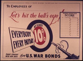 | Keywords: "Let's hit the bull's eye" - NARA - 514879.jpg Scope and content General notes 514879 Local identifier 44-PA-1273 Office for Emergency Management Office of War Information Domestic Operations Branch Bureau of Special Services 03/09/1943 - 09/15/1945 Still Picture Records Section Special Media Archives Services Division NWCS-S National Archives at College Park 8601 Adelphi Road College Park MD 20740-6001 1941 - 1945 Record group Record Group 44 Records of the Office of Government Reports 1932 - 1947 Record group ARC 373 World War II Posters compiled 1942 - 1945 Series ARC 513498 File unit File unit ARC Variant control numbers NAIL Control Number NWDNS-44-PA-1273 Other versions <gallery> File Let's_hit_the_bull's_eye _-_NARA_-_514879 tif tif File Let's_hit_the_bull's_eye _-_NARA_-_514879 jpg jpg </gallery> NARA-cooperation PD-USGov World War II posters from the United States |