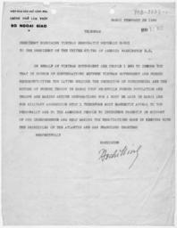 | Keywords: Letter from Ho Chi Minh to President Harry S. Truman - NARA - 305263.jpg Scope and content General notes 305263 Local identifier Joint Chiefs of Staff Office of Strategic Services 06/13/1942 - 10/01/1945 NARA-Place Vietnam Asia nation 3137431 16 106 <br /> Archives II Reference Section Military Textual Archives Services Division NWCT2RM National Archives at College Park 8601 Adelphi Road College Park MD 20740-6001 1946-02-28 Record group Record Group 226 Records of the Office of Strategic Services 1919 - 2002 Record group ARC 553 Washington and Pacific Coast Field Station Files compiled 1942 - 1945 Series ARC 305262 File unit File unit ARC Variant control numbers NAIL Control Number NWCTM-226-ENT140-HOCHIMINHLTR<br /> Other Identifier 10426<br /> This is the NARA internal exhibit tracking number Other versions <gallery> File Letter_from_Ho_Chi_Minh_to_President_Harry_S _Truman_-_NARA_-_305263 tif tif File Letter_from_Ho_Chi_Minh_to_President_Harry_S _Truman_-_NARA_-_305263 jpg jpg </gallery> NARA-cooperation PD-USGov Ho Chi Minh documents Harry S Truman documents Vietnam in the 1940s |