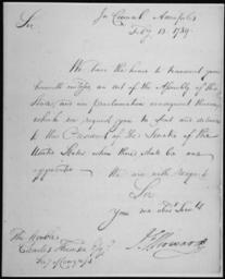 | Keywords: Letter of Governor John Eager Howard transmitting an act of the Maryland Assembly and a proclamation announcing the elec - NARA - 306217.jpg Local identifier U S Senate 03/04/1789 - Center for Legislative Archives NWL National Archives Building Room 8E 7th and Pennsylvania Avenue NW Washington DC 20408 1789-02-13 Record group Record Group 46 Records of the U S Senate 1789 - 2011 Record group ARC 375 Credentials compiled 1789 - 1998 Series ARC 306203 Variant control numbers NAIL Control Number NWL-46-ELECTION-1AH1-12 General notes Scope and content File unit File unit ARC no <gallery> File Letter of Governor John Eager Howard transmitting an act of the Maryland Assembly and a proclamation announcing the elec - NARA - 306217 tif TIFF File Letter of Governor John Eager Howard transmitting an act of the Maryland Assembly and a proclamation announcing the elec - NARA - 306217 jpg JPEG </gallery> NARA-cooperation PD-USGov derivative works Charles Thomson signature jpg John Eager Howard signature jpg 1789 documents Documents in English Documents of the United States Manuscripts |