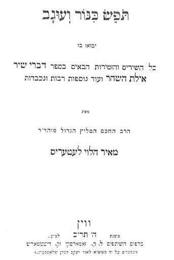 Keywords: Letteris Tofes.JPG front page of Tofes Kinor Ve-Ugav poetry book of Hebrew poet Max Letteris 1800-1871 printed Vienna 1860 scanned by User Netan'el 1860 PD-old PD-old Hebrew writing