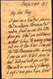 | Keywords: LetterP0OvB to MCKing15111875.jpg Page 1 of a personal letter written by German Chancellor Otto von Bismarck addressed to his fellow member of Corps Hannovera Göttingen Mitchell C King of Charleston South Carolina and Flat Rock North Carolina written at Varzin manor Warcino on November 15 1875 TEXT Varzin 15 nov 1875 My dear King It gave me a heartful pleasure that an allusion thrown out at random found an echo in a letter from you What you write carries me back to days the memory of which will ever be dear to me I am glad that the Hanoverian ribbon for which I saw you enter the lists sword in hand holds good with you not less than with me as a bond of fellowship I wish it were given to you to visit Page 2 thumb left Scan of the letter in the Library of Congress Washington DC 1875 Creator Otto von Bismarck First published in 1966 by Mullen/Rogge in Historische Zeitschrift Vol 202 1966 pp 352-362 PD-old-100 Otto von Bismarck in 1875 Bismarcks correspondence with Mitchell Campbell King Autographs of Otto von Bismarck Library of Congress Manuscript Division |