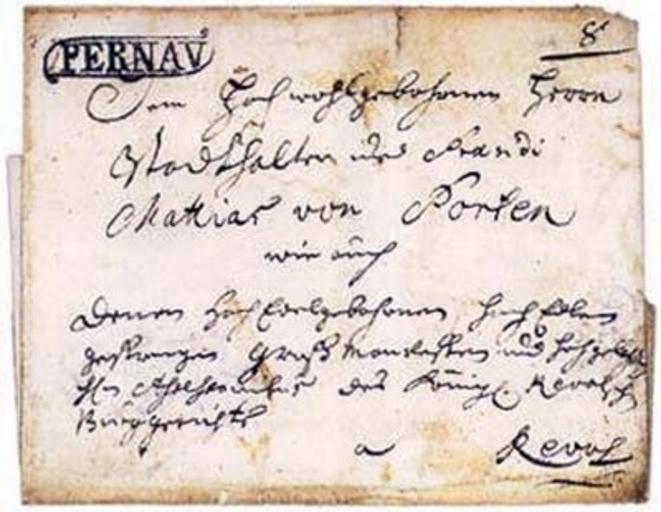Keywords: LetterPernau1708.jpg ru Письмо отп авленное из Пе нова погашенное дома очным штемпелем ациональный а хив Стокгольма Author 1708 Stampless covers of Estonia Postal history Postmarks of Pärnu Manuscript letters written messages PD-old-100