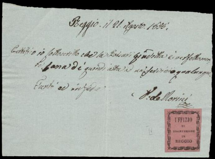 | Keywords: LetterReggio1855.jpg ru Холе ное письмо с наклейкой Дезинфекционной службы Реджио http //cat auktionen-gaertner de/GPKATAUK/48/C5/48C5DA/s159288 jpg PIC cat auktionen-gaertner de Postal administration of the Duchy of Modena 1855 PD-old Postal covers of Italy 1855 stamps of Modena Cinderella stamps Stamps on covers and postcards Cholera Medicine on stamps |